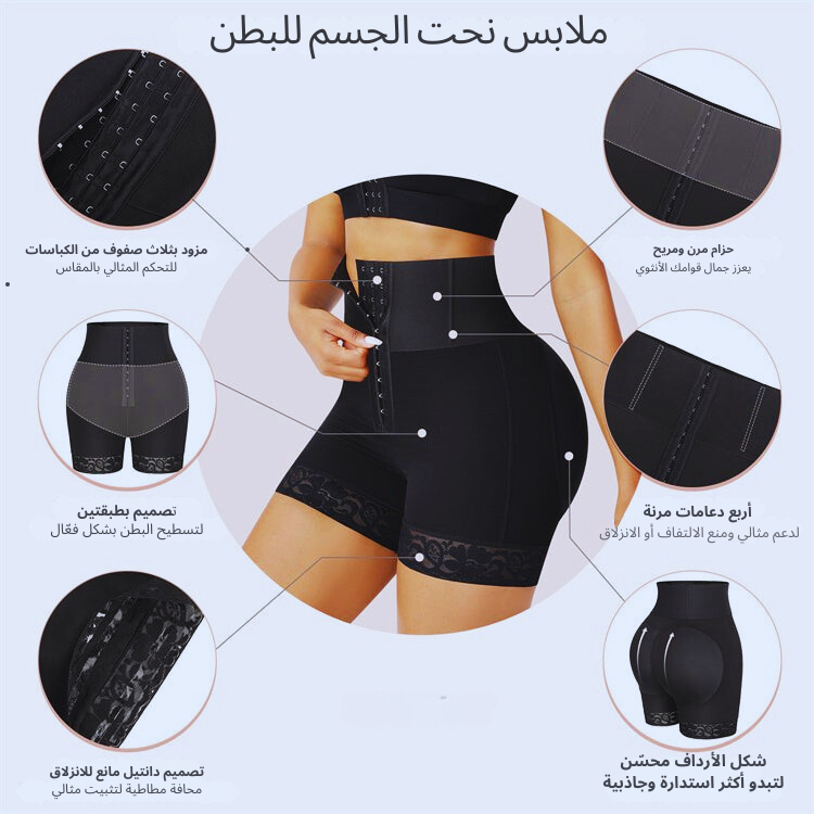 ملابس داخلية مبطنة للتحكم في البطن وتنحيف الخصر العالي وحزام لشد الأرداف ورفع الأرداف